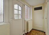 Ruime entree/hal met toegang tot de garage, toilet en badkamer voorzien van douche en wastafel. Vanuit de hal loop je naar de 2e hal met meterkast en trapopgang naar de 1e verdieping, de woon-/slaapkamer van ca. 11 m² met erker en de woonkamer en eetkamer ensuite van ca. 27 m². Prachtig zijn de ensuitedeuren en de vele raampartijen waardoor het huis zeer licht is. De keuken van ca. 7 m² met zicht op de achtertuin is voorzien van eenvoudige inrichting. Via de ruime garage van ca. 28 m² met zolderberging en c.v.-opstelling loop je naar de verzorgde en royale tuin van maar liefst 37  meter diep! Achter de garage is een extra berging.