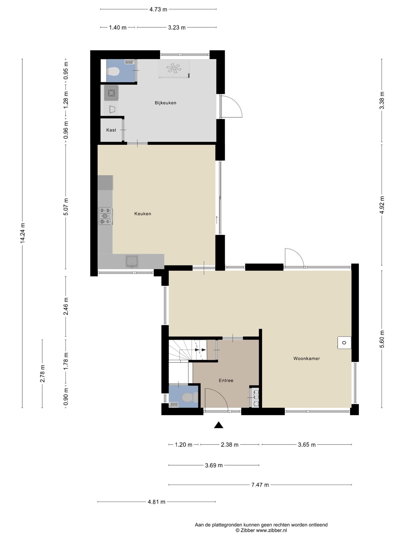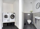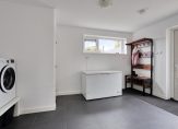 Entree/hal, toiletruimte, handige provisiekelder en een woonkamer van ca. 30 m² met houtkachel en deur naar de royale en diepe tuin. Door de vele raampartijen komt er veel licht naar binnen. In de aanbouw vind je een royale woonkeuken en bijkeuken. De woonkeuken van 30 m² met schuifpui naar het terras is licht en voorzien van moderne keukeninrichting met inbouwapparatuur: een fornuis met gaskookplaat, oven en afzuigkap, vaatwasser en koelkast. Vanuit de keuken is de toegang naar de ruime bijkeuken van totaal 16 m² met kastruimte, toiletruimte, witgoedaansluitingen en deur naar de tuin. Zowel de keuken als bijkeuken zijn voorzien van vloerverwarming met moderne tegelvloer.