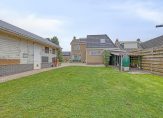 De tuin van maar liefst 21 meter diep ligt op het zuiden, prachtig vrij, geen inkijk, alleen rust, ruimte en privacy! De tuin is verzorgd aangelegd met een royaal terras en een gazon. De royale geïsoleerde garage van 47 m² met vliering is ideaal voor klussers, hobbyisten of als opslag. Achter de garage is een overkapping voor eventueel een zitmaaier. In de vrijstaande houten berging van ca. 9 m² kun je goed je fietsen en tuinspullen kwijt. Aan beide kanten van de woning zijn opritten – samen goed voor minstens 5 auto’s.