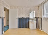 Via de vaste trap kom je op overloop van de 2e verdieping met c.v. opstelling en veel bergruimte. Ook is hier de 4e slaapkamer van ca. 9 m² met vaste kasten en wastafel.