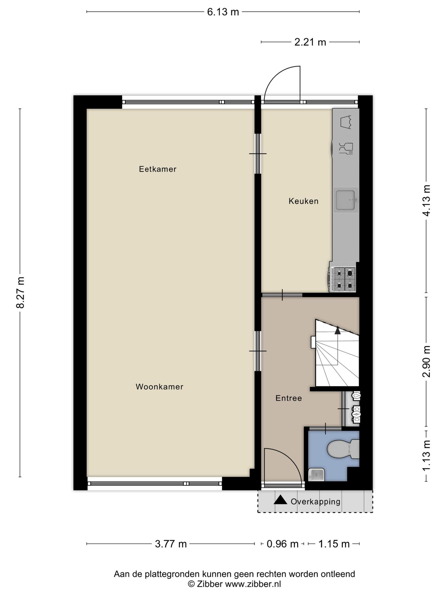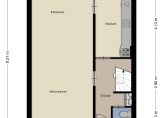Entree/hal, meterkast, toilet met fonteintje, woonkamer ca. 31 m² met uitzicht over het voetpad, dichte keuken van ca. 9 m² welke is voorzien van eenvoudige inrichting en deur naar de achtertuin.