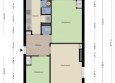 Ingang portiek met brievenbussen en intercom, trapopgang naar de 2e verdieping, toegang tot het appartement met ruime hal met meterkast en toiletruimte. Lichte woonkamer van ca. 18 m² aan de voorzijde met grote raampartijen en door de hoekligging ook een extra raam aan de zijkant, achtergelegen slaapkamer van ca. 18 m² met inbouwkast en toegang tot het balkon over de gehele breedte van het appartement en de 2e slaapkamer gelegen naast de woonkamer van ca. 10 m². Aan de achterzijde is de keuken van ca. 7 m² met vaatwasser, oven (2022) en gaskookplaat met deur naar het balkon, een wasruimte en de badkamer met wastafelmeubel, designradiator en douche.