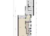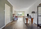 Entree/tochtportaal met aangrenzend een royale hal, toiletruimte en handige kelderruimte. Royale woonkamer van ca. 42 m² met openslaande deuren naar de tuin, dichte keuken van ca. 9 m² met daarachter de bijkeuken met berging en de aangebouwde houten schuur.
