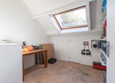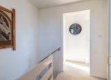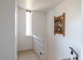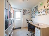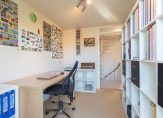 Dankzij de hoge gootlijn is er veel ruimte op de eerste verdieping, waar je drie ruime slaapkamers vindt van ca. 18, 12 en 8 m² waarvan 1 toegang geeft tot het balkon. De mogelijkheid bestaat om van de grootste kamer 2 slaapkamers te maken. De nette badkamer is voorzien van wastafel, een inloopdouche, 2e toilet en designradiator. De werkkamer/kantoorruimte van ca. 9 m² is bereikbaar via de garage/berging.