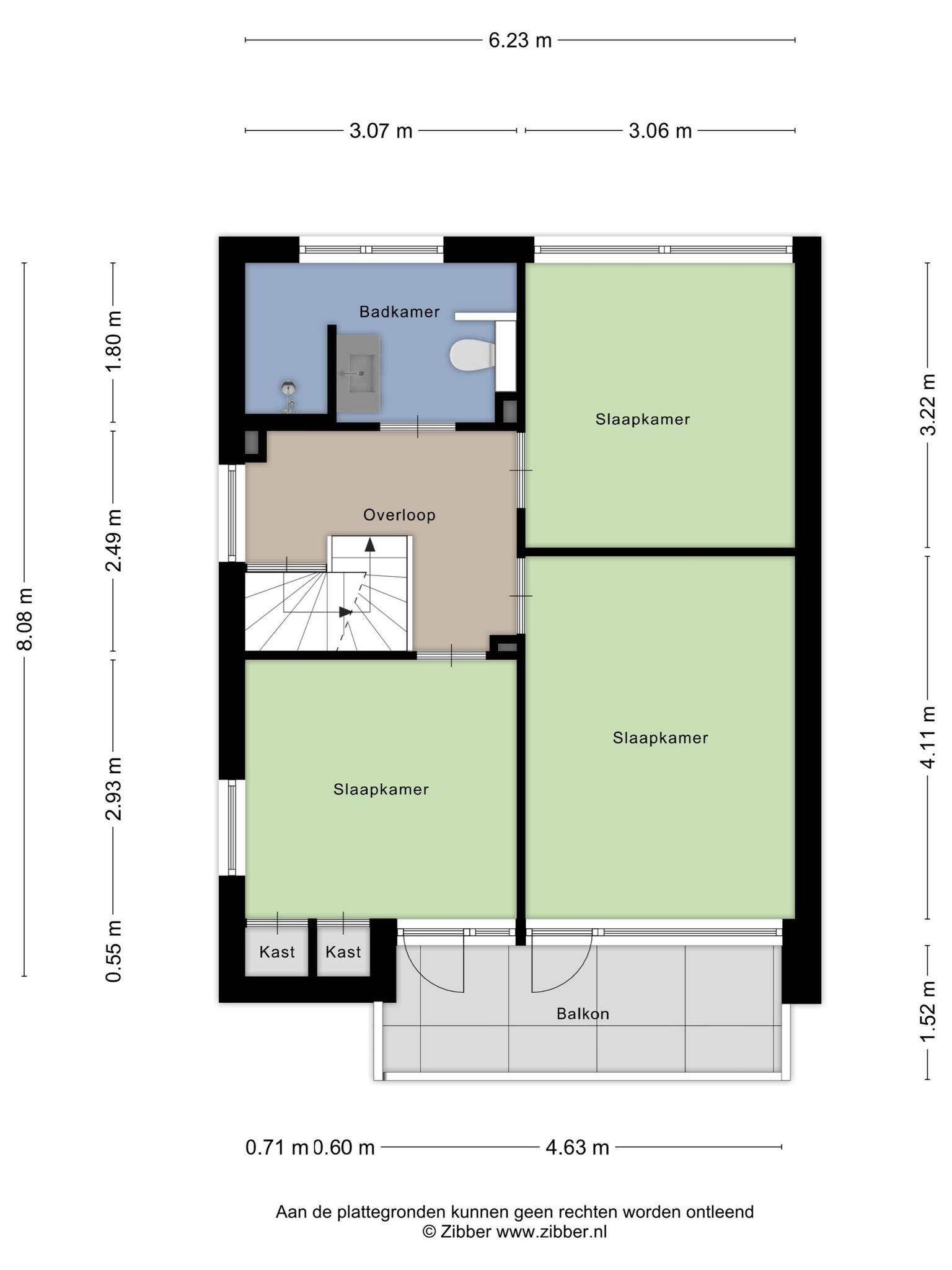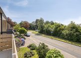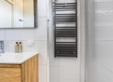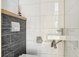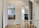 Ruime overloop met 3 slaapkamers van ca. 9, 10 en 13 m², waarvan 1 met vaste kasten en 2 toegang hebben tot het balkon aan de voorzijde. Ook vind je hier de moderne badkamer met inloopdouche, wastafel met meubel, designradiator en 2e toilet.