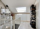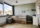De tweede verdieping is een volwaardige woonlaag. Hier vind je een ruime overloop met c.v. opstelling, eventueel plek voor extra werkruimte én een royale 4e slaapkamer van ca. 10,5 m². Achter de knieschotten met schuifdeuren zijn praktische bergruimtes gecreëerd.