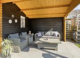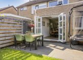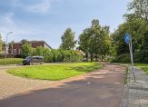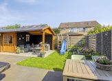 De zonnige achtertuin met achterom ligt op het noordwesten en is modern aangelegd: een ruim terras bij de woning, gazon, sierborder en achter in de tuin een berging met ruime overkapping. Dé plek om lange zomeravonden door te brengen of beschut te genieten van het vroege voorjaar en het najaar. De aangebouwde garage van ca. 21 m² is voorzien van elektrische deur en loopdeur naar de tuin. Op de oprit is er plek voor 2 auto’s. Aan de voorzijde zijn meerdere parkeervakken voor bezoek.