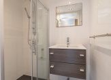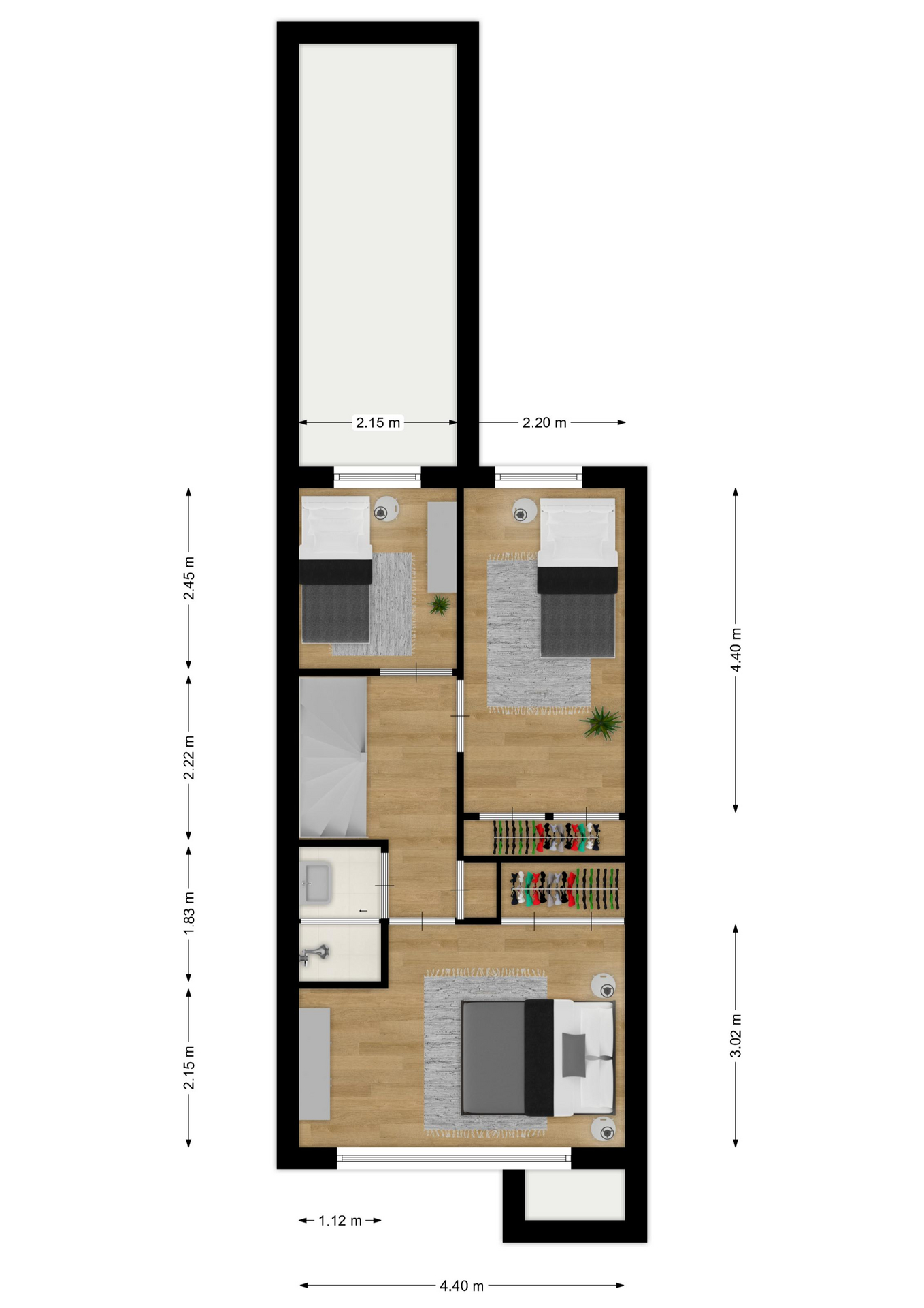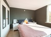 Overloop met bergkast, 3 slaapkamers van ca. 14, 11 en 5 m², waarvan twee met inbouwkasten en een badkamer met wastafel en douche.