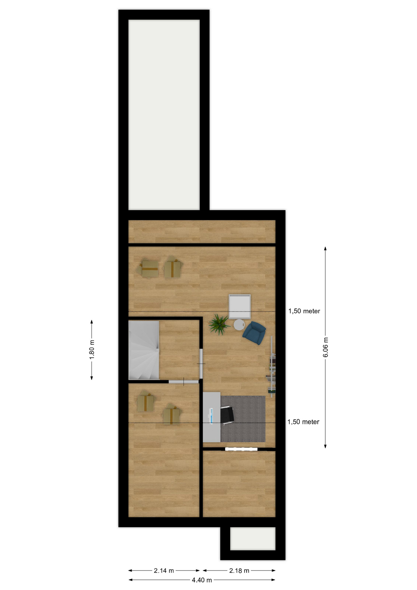Middels vaste trap te bereiken zolderkamer/4e slaapkamer van ca. 7 m ² met dakraam en bergruimte.
