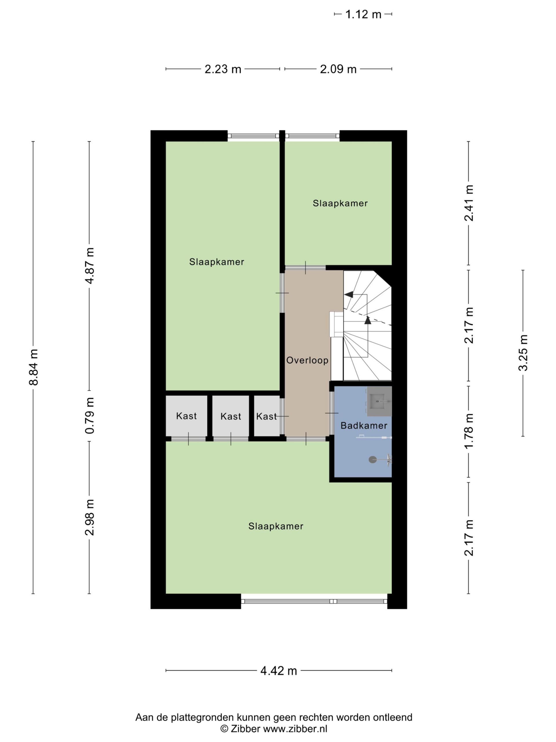 – Op de verdiepingen kunststof kozijnen met horren;