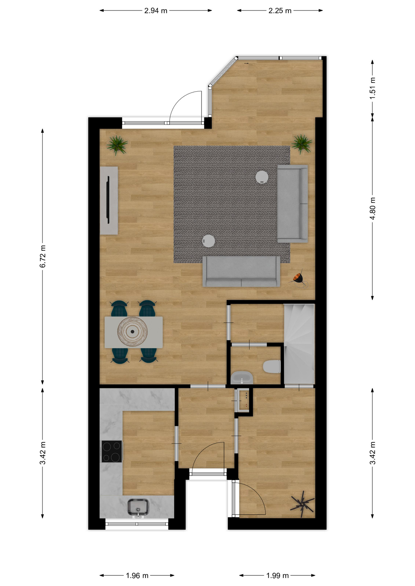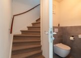 Entree/hal met toegang tot de inpandige (fietsen)berging/bijkeuken en meterkast. Ruime tuingerichte woonkamer met raampartijen over de hele breedte, deuren naar de tuin en een aangebouwde serre; totaal circa 38 m² groot. De moderne keuken uit 2016 is aan de straatzijde en voorzien van inductiekookplaat met afzuigkap, vaatwasser, close-in boiler, koel-vriescombinatie en oven. Wil je liever een woonkamer met open keuken? Dit is eenvoudig te realiseren. Het modern toilet is in de tussenhal met trapopgang naar de eerste verdieping.