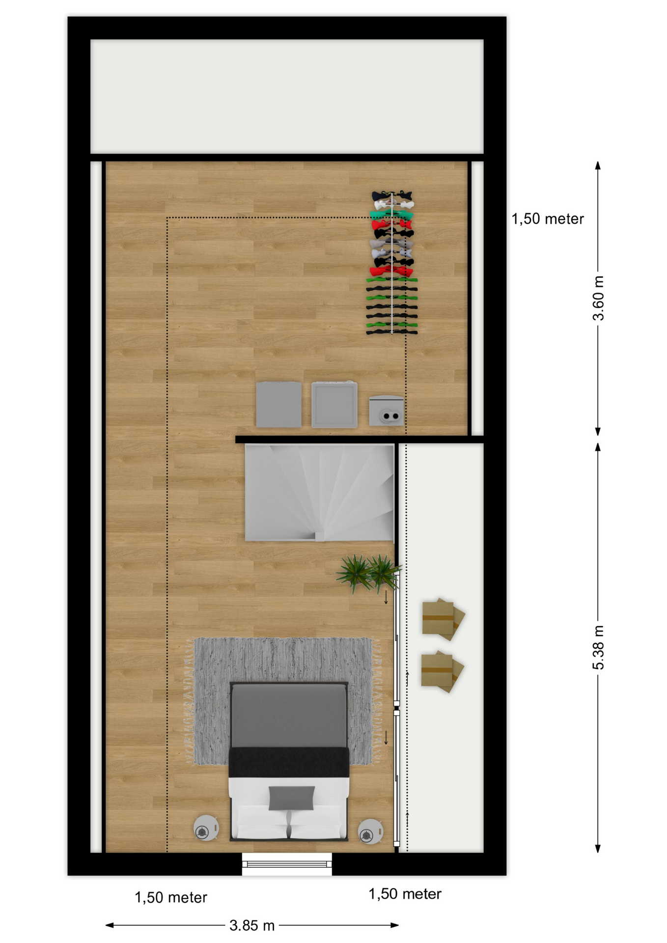 Een 4e slaap-/zolderkamer van ca. totaal 26 m² met veel bergruimte, cv-installatie en witgoedaansluitingen.