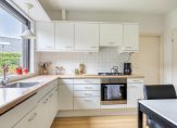 De tuin rondom is verzorgd aangelegd. De achtertuin met terras aan huis ligt op het zuiden en biedt volop privacy. De inpandige garage is ca. 17 m² groot.
