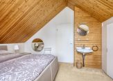 Op een heerlijk rustige locatie staat deze fraaie vrijstaande woning met een slaapkamer en badkamer op de begane grond. Het huis ligt op een rustige en verkeersarme locatie in een ruim opgezette wijk. De tuin is verzorgd aangelegd en biedt volop privacy. De grote raampartijen en de vide geven het huis een ruime en lichte uitstraling. De mogelijkheid bestaat om de slaapkamer te vergroten door de aangebouwde stenen garage erbij te voegen.