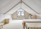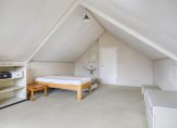 Overloop met vide, modern toilet, royale slaapkamer van ca. 25 m² met wastafel, slaapkamer van ca. 15 m² met wastafel en kastruimte en een bergruimte met c.v. opstelling.