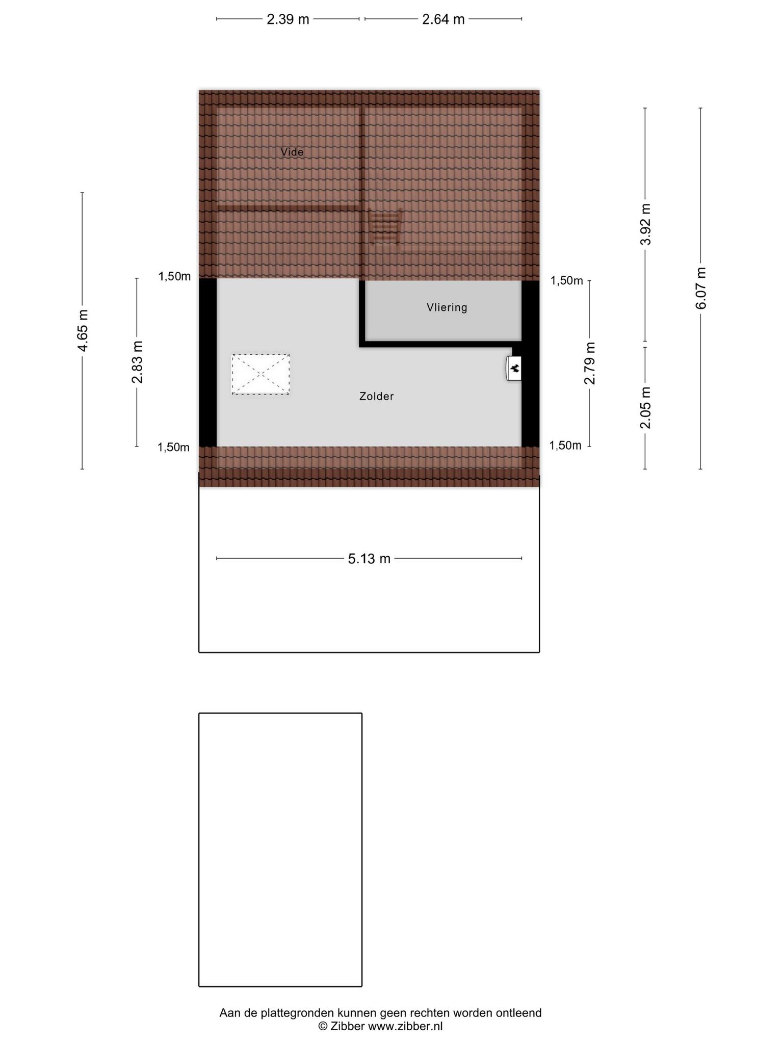 Via vlizotrap op de overloop is de ruime zolder met c.v. opstelling te bereiken. Hier kun je een 4e slaapkamer realiseren.