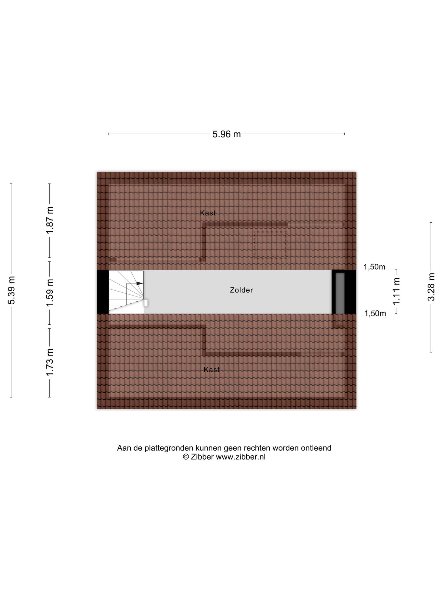 Via vaste trap is de zolder te bereiken met veel bergruimte over de gehele breedte van de woning.