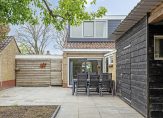 De onderhoudsvriendelijke achtertuin ligt op het zuidwesten. Hierdoor kun je lang genieten van de zon. Aan de houten berging is een overkapping waar je heerlijk beschut kunt zitten. De oprit biedt plek voor zeker 3 auto’s.