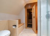 Ruime en lichte overloop en gang met vaste kasten en schuifdeur naar het balkon. Op de verdieping zijn 5 slaapkamers van ca. 25, 20, 19, 19 en 18 m², waarvan 2 zijn voorzien van inloopkasten en de grootste is voorzien van kastenwand en toegang tot het balkon. 1 Slaapkamer is opgedeeld in een slaap- en werkkamer; de mogelijkheid bestaat om hier eventueel een 6e slaapkamer van de te maken. Op de verdieping zijn 2 badkamers van 17 en 15 m². De grootste badkamer is voorzien van sauna, jacuzzi, douchecabine en dubbele wastafel. De 2e badkamer moet opnieuw opgebouwd worden.