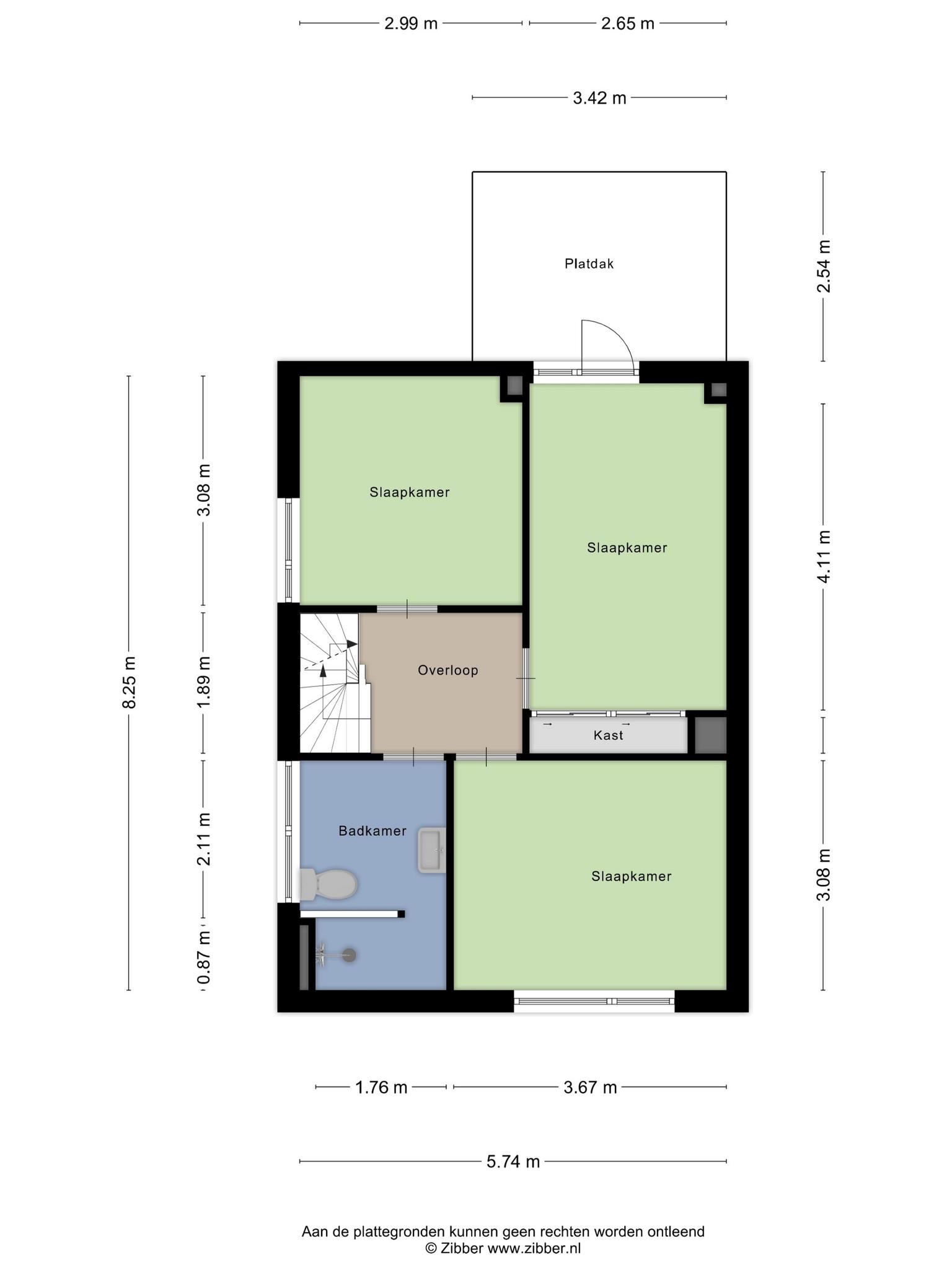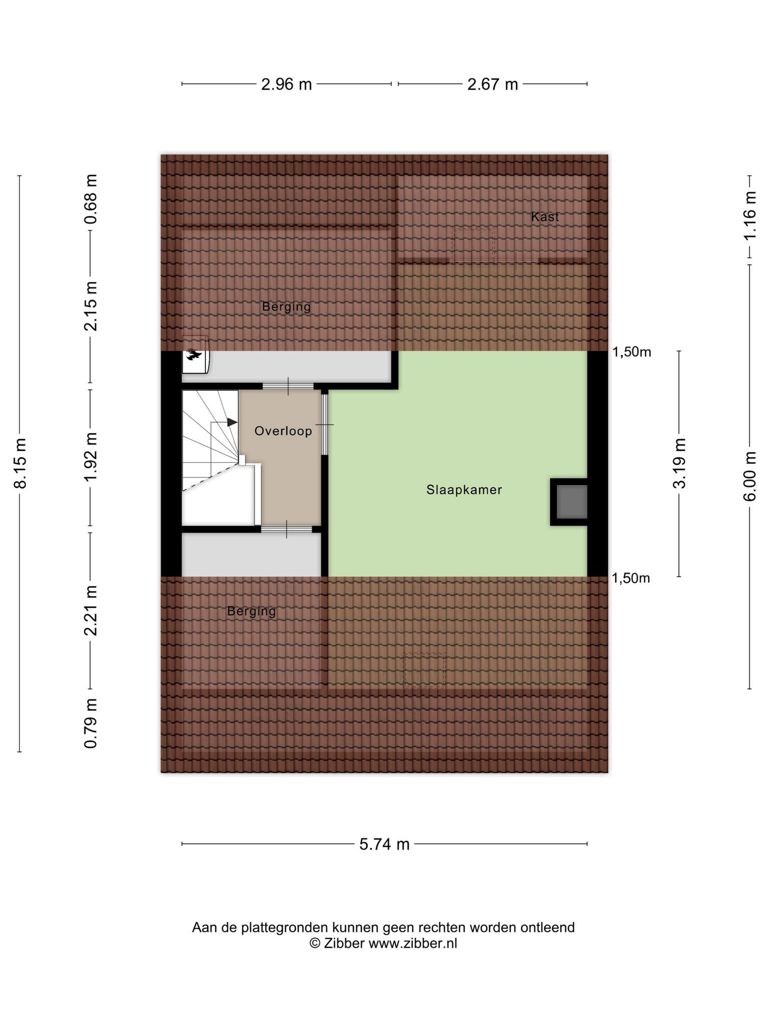 Overloop, bergruimte en een ruime slaapkamer van ca. 12 m².
