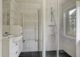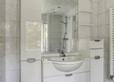 Op de eerste verdieping bevinden zich een ruime overloop met vaste kasten, vier slaapkamers van ca. 12, 9, 9 en 6 m², waarvan 2 voorzien zijn van vaste kasten, en een nette badkamer voorzien van vloerverwarming met douche en wastafel.