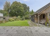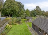 De grote tuin rondom de woning en de zeer diepe achtertuin biedt veel privacy en is een heerlijke plek voor gezinnen die van buitenleven houden: er is ruimte om te spelen, tuinieren of ontspannen. De lange oprit biedt parkeergelegenheid voor meerdere auto’s. De vrijstaande houten garage met vliering en een berging is ideaal voor klusruimte, extra opslag en tuinspullen.