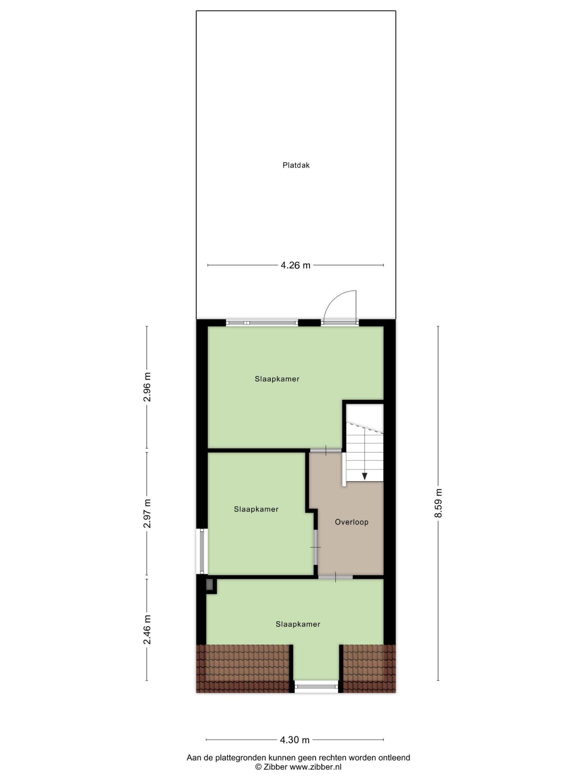 Overloop met toegang tot 3 slaapkamers van circa 9, 7 en 7 m².