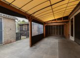 De achtertuin op het zuidoosten met privacy is verzorgd aangelegd. Beschut zitten of juist in de zon kan hier optimaal. U kunt geheel rondom de woning lopen. In de tuin staat een houten overkapping. De oprit is geschikt voor meerdere auto’s.
