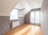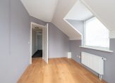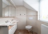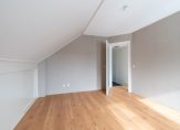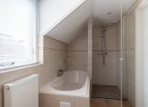 Overloop, 4 royale slaapkamers van ca. 17, 14, 10 en 10 m² , waarvan één met bergruimte achter de knieschotten en een badkamer voorzien van inloopdouche, ligbad, toilet en dubbele wastafel met meubel.