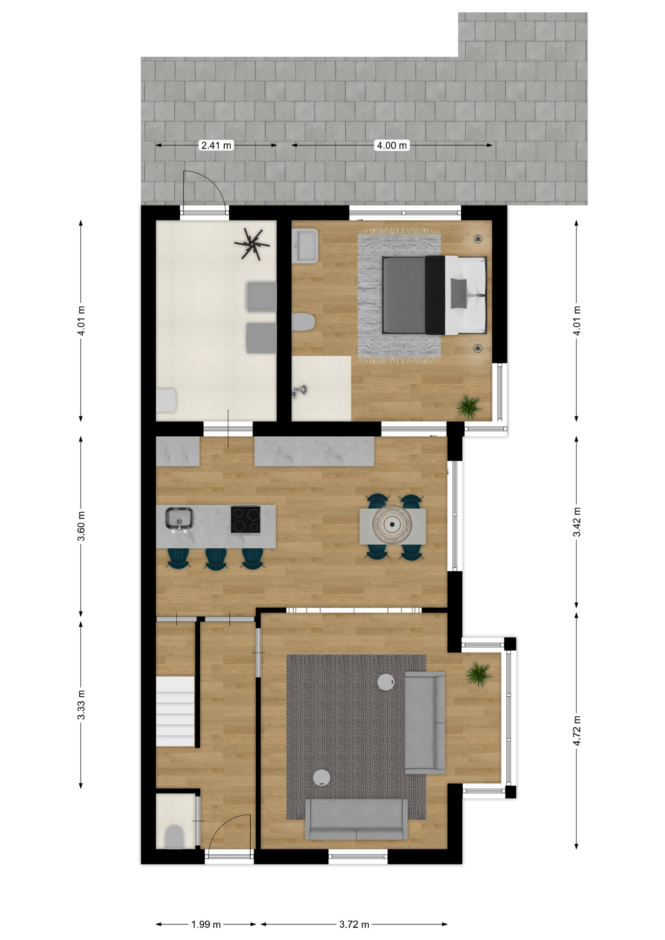 – Slaapkamer en badkamer op begane grond;